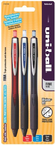 uni-ball Vision RT Retractable Fine Point Roller Ball Pens, 3 Assorted Ink Pens (1741793) Overviews